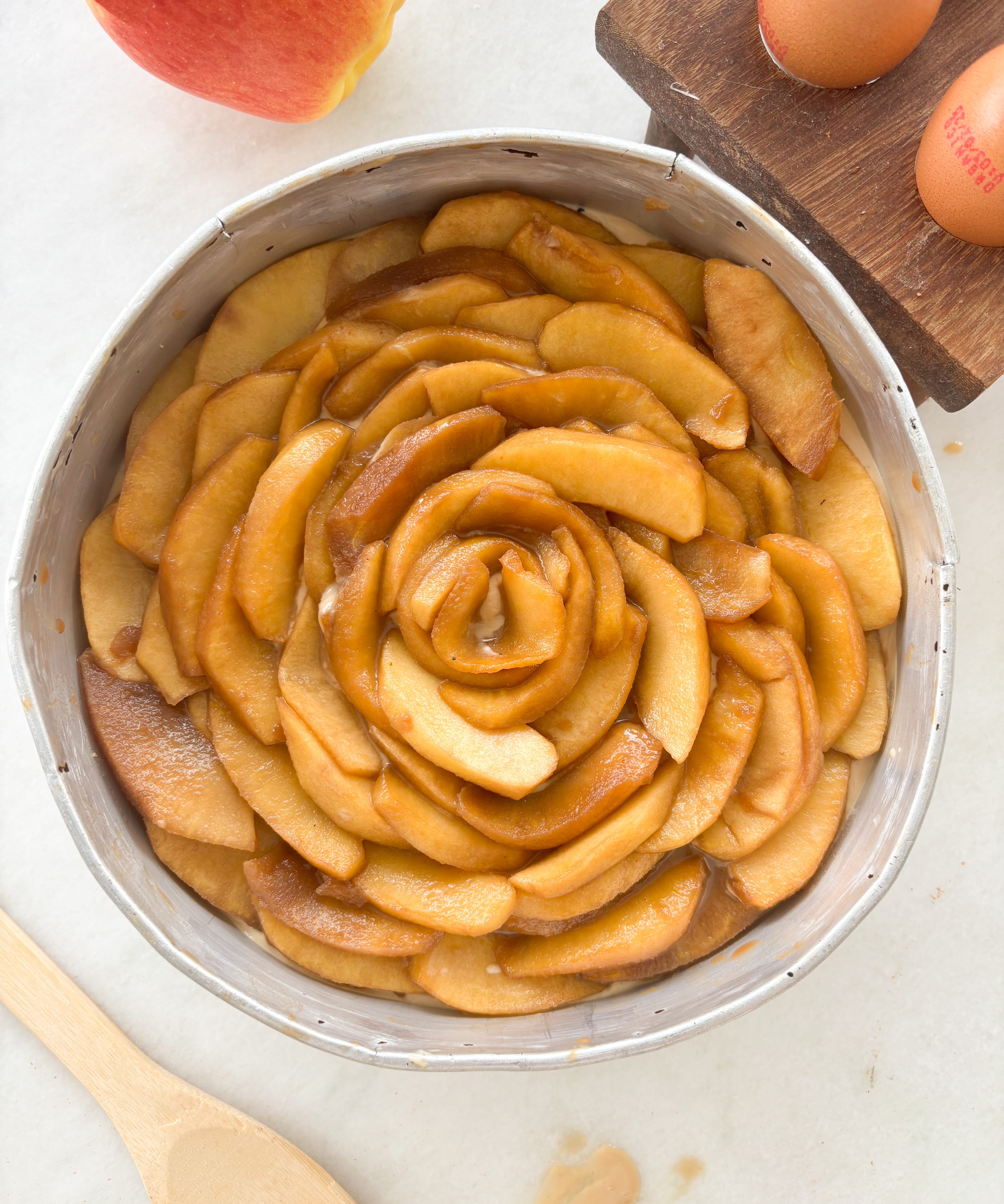 Estava lembrando desta viagem e a ideia do cheesecake de maçã voltou com força, e fiquei pensando como fazer diferente. Nesta primeira versão, decidi caramelizar as maçãs antes, o que foi fundamental para garantir sabor e textura perfeita. E como não queria que o recheio do cheesecake ficasse em branco, literalmente, acrescentei um pouco de açúcar Mascavo para dar aquela profundidade de sabor que tem tudo a ver com o caramelo de maçã. Ficou incrível!